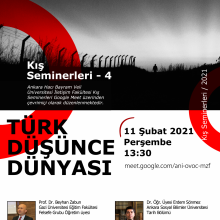 Bölümümüz öğretim üyelerinden Erdem Sönmez, 11 Şubat 2021 tarihinde saat 13.30'da Ankara Hacı Bayram Veli Üniversitesi'nde "Geç Osmanlı ve Erken Cumhuriyet Türkiyesi'nde Tarihyazımı, Siyaset ve M. Fuad Köprülü başlıklı bir konuşma yapacaktır. Konuşmanın detaylarına ve linkine afişten ulaşabilirsiniz.